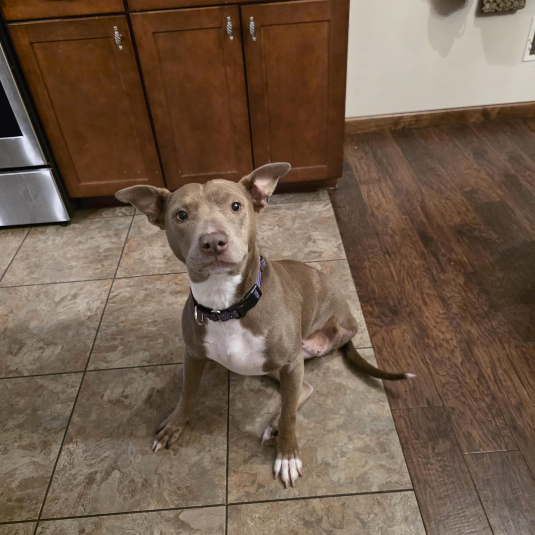 Are you ready for a big, sweet, lovable, ball of energy to join your family? Then Raya is your girl and is only 23 lbs!! She gives love as much as she wants your love. The vet says she is about 2yo, but she's got puppy energy. In her Foster home she's always ready for a play session- whether it's toys, her human foster brother, or fetching balls in the yard. Raya loves to run, so a fenced backyard would be ideal. If not, she's making due in her foster home with lots of walks/trots in the neighborhood. Raya has done well with the neighborhood dogs, but she's a bit too reactive to the family cats. Either a non- feline home or one where they can be separated is best. Raya is relearning her potty training, but she is catching on pretty quickly Apply to Adopt Stormy
