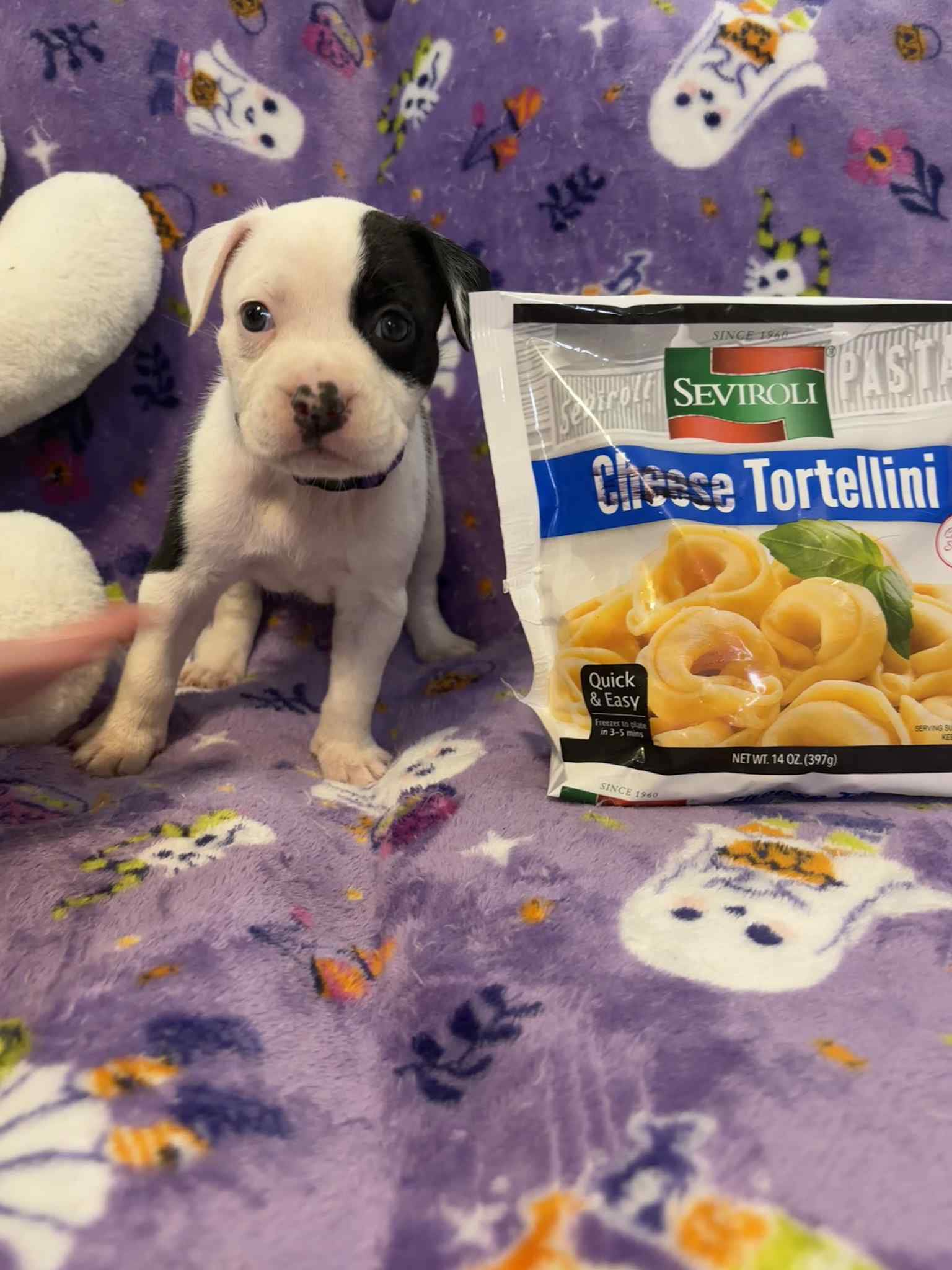 PASTA PUPPIES!! Hi! I’m Tortellini! I was born on 8/26 and will be available for adoption after 10/21! I can be pre-adopted at 6 weeks. I am a very smart, outgoing, brave girl! I love getting attention, and will demand it if not received quickly enough! I love playing with my siblings and chewing on toys! Apply to Adopt Ziti!
